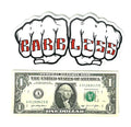This is a big sticker - make a big statement. Shown next to a one dollar bill for scale.